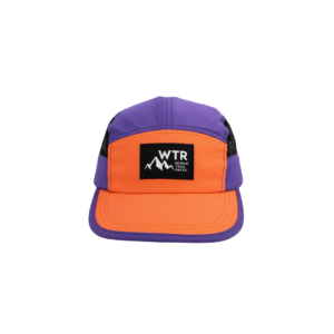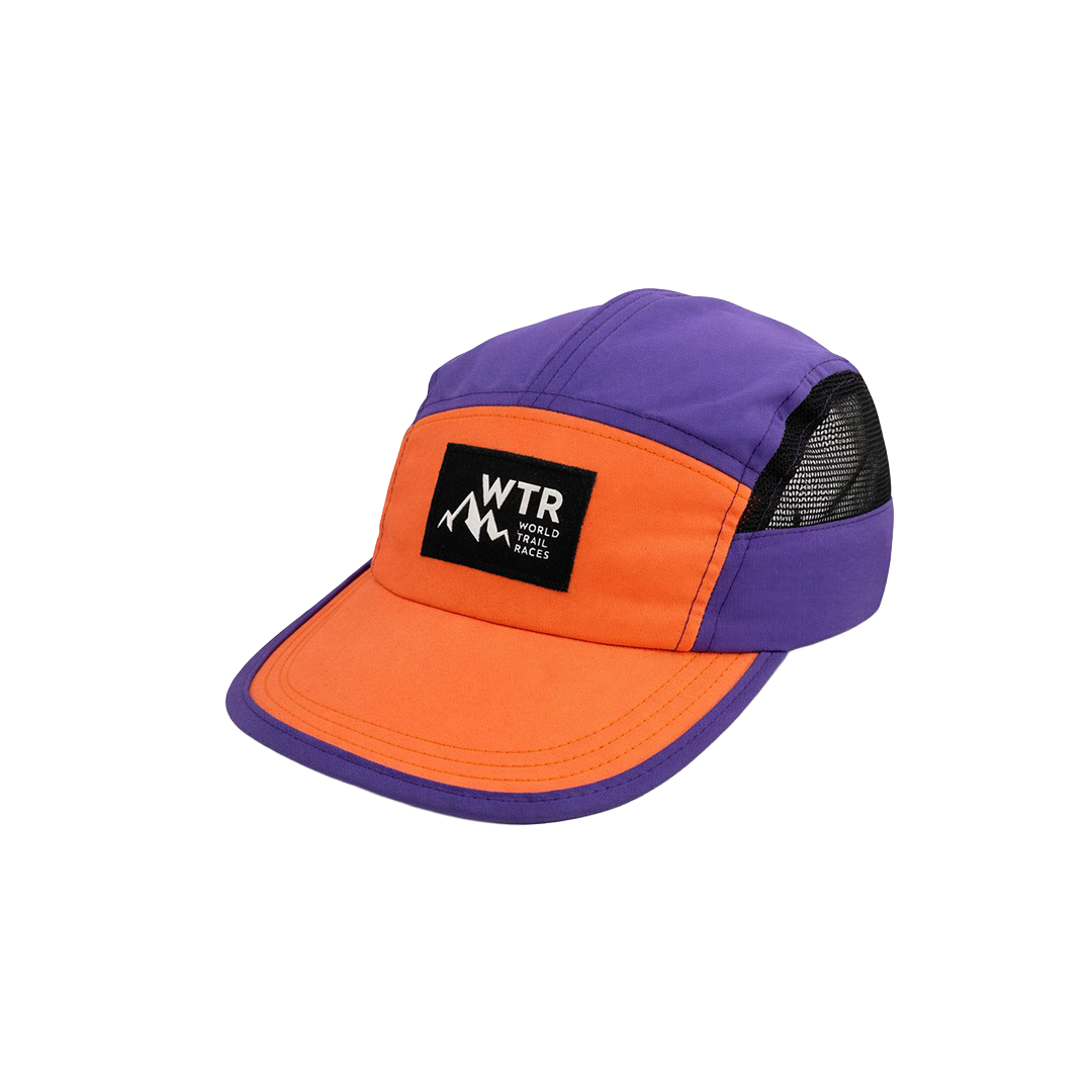 Boné WTR em laranja e roxo, com laterais em tela, aba curva e patch frontal da marca, unindo ventilação, conforto e estilo esportivo.